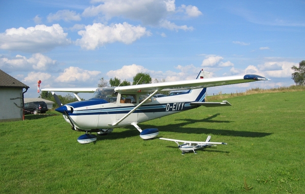 Eigner-Geschäftsreiseflugzeug Cessna 172 - daneben als Modell originalgetreu nachgebildet