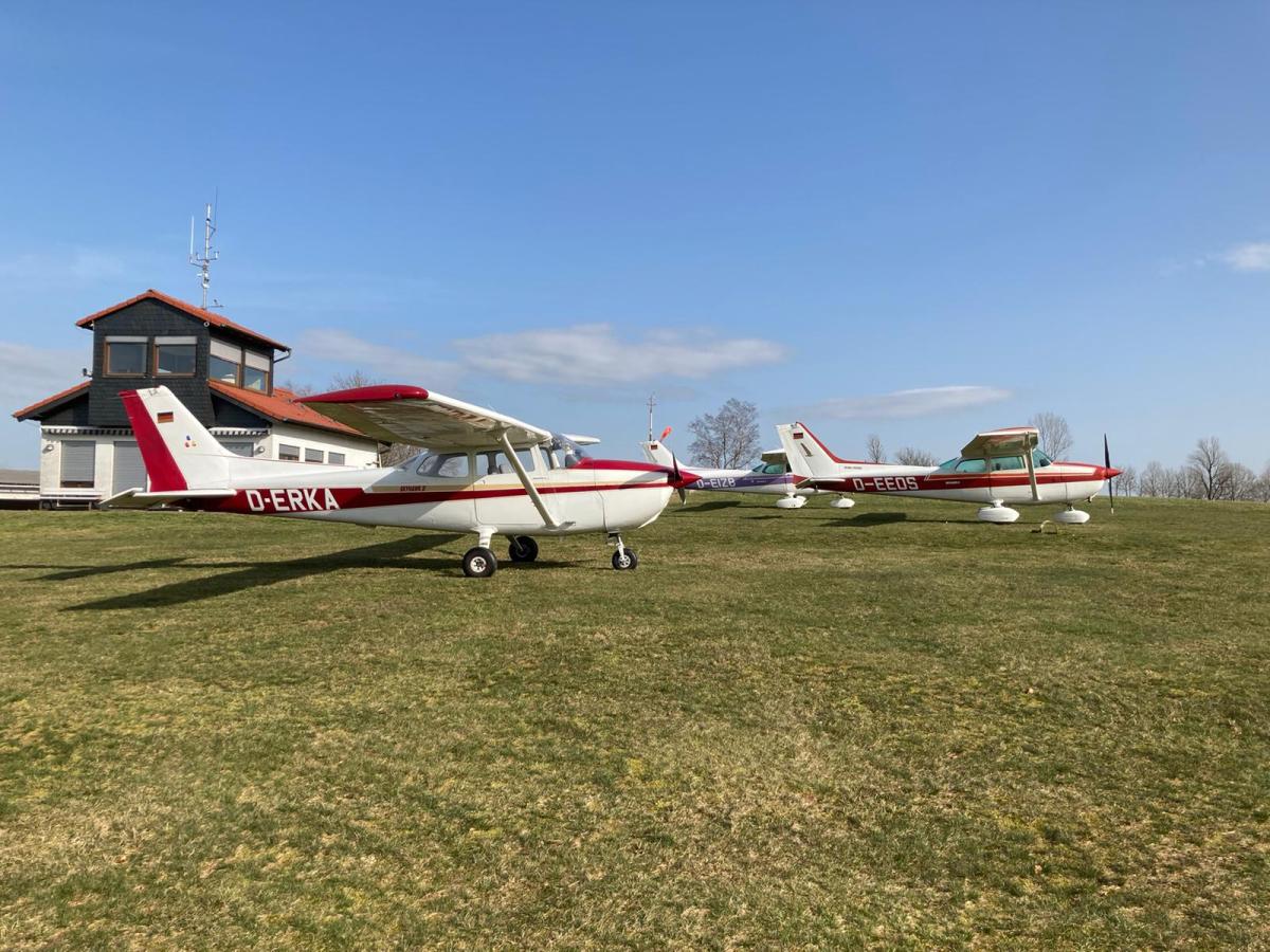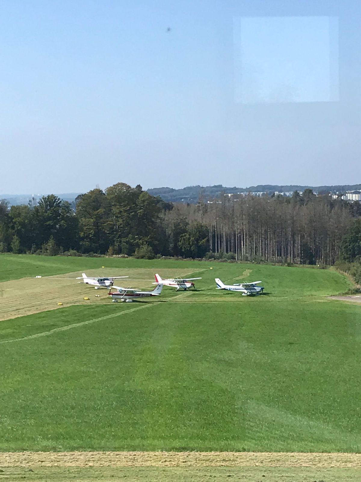 Andrang an unsererTankstelle (for "refuel"). 4 x Cessna 172 wollen nach dem Tanken fliegen