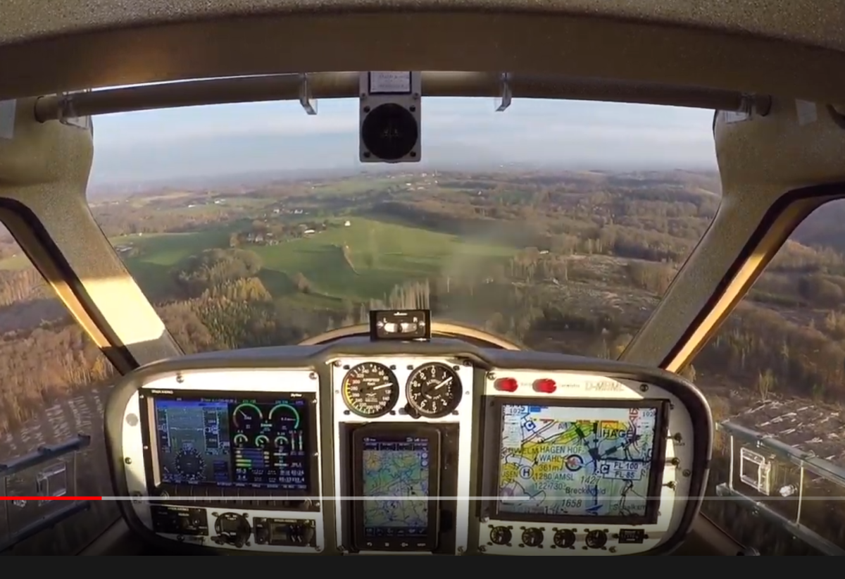 Bildschirm-Panel ("Glas-Cockpit") im Cockpit des UL "CT-SL". Unten ein kleiner "Uhrenladen" als Redundanz. UL befindet sich im End-Anflug auf die Piste/Runway "10".