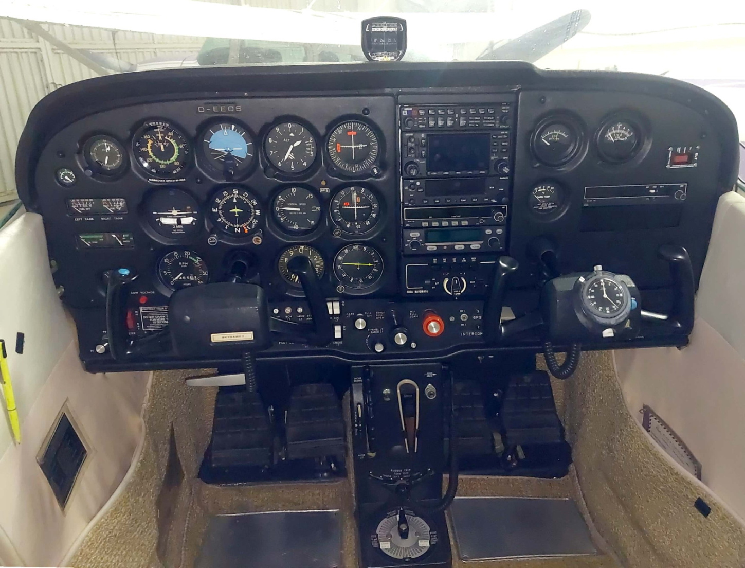 Im Cockpit unserer Cessna 172 ("Uhrenladen").